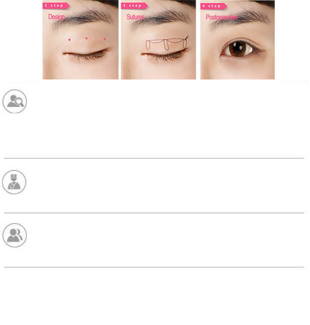 三点双眼皮手术是在上眼睑皮肤的合适位置,打三个小孔,去掉部分脂肪和多余皮肤,并将真皮层与睑板进行三点缝合。